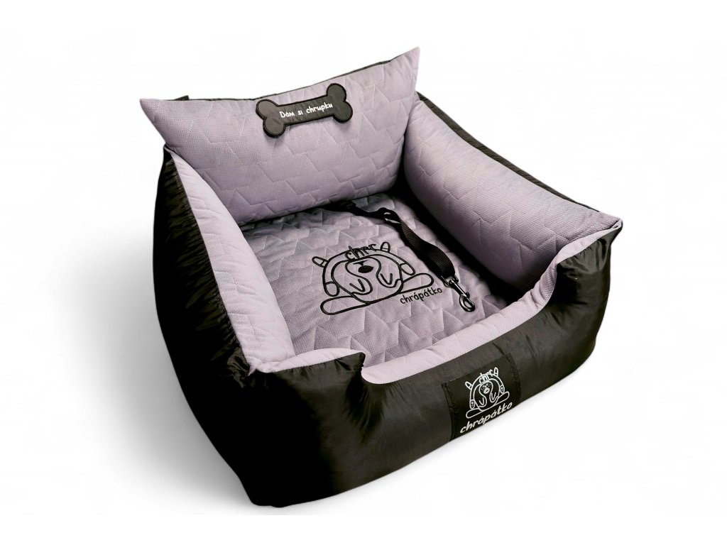 Autosedačka pro psy "Dám si chrupku Vuitton" grey lilac