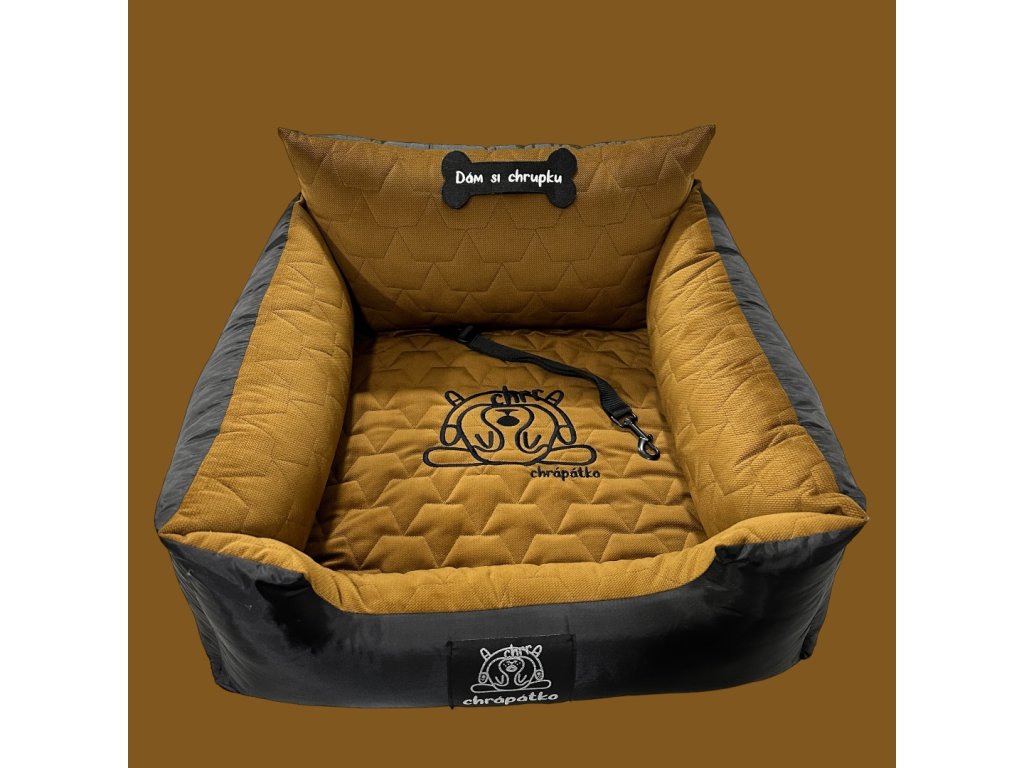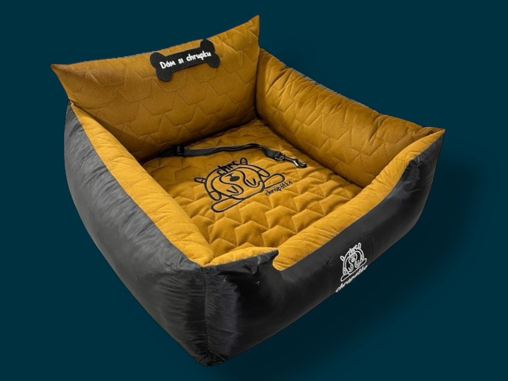 Luxusní materiály, prémiová výšivka na potahu matrace s logem Chrápátka a nášivka na předním mantinelu spolu s pořádnou vycpávkou donutí vašeho psa doslova zachrápat!