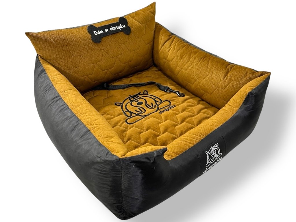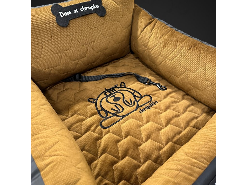 Autosedačka pro psy "Dám si chrupku Vuitton" honey atyp