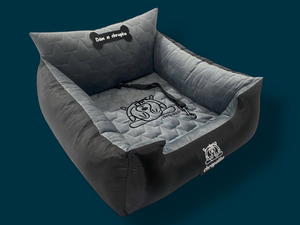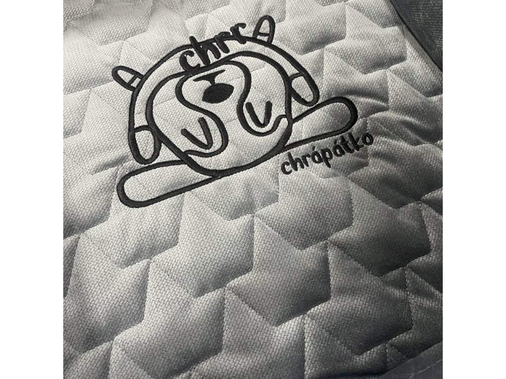 Luxusní materiály, prémiová výšivka na potahu matrace s logem Chrápátka a nášivka na předním mantinelu spolu s pořádnou vycpávkou donutí vašeho psa doslova zachrápat!