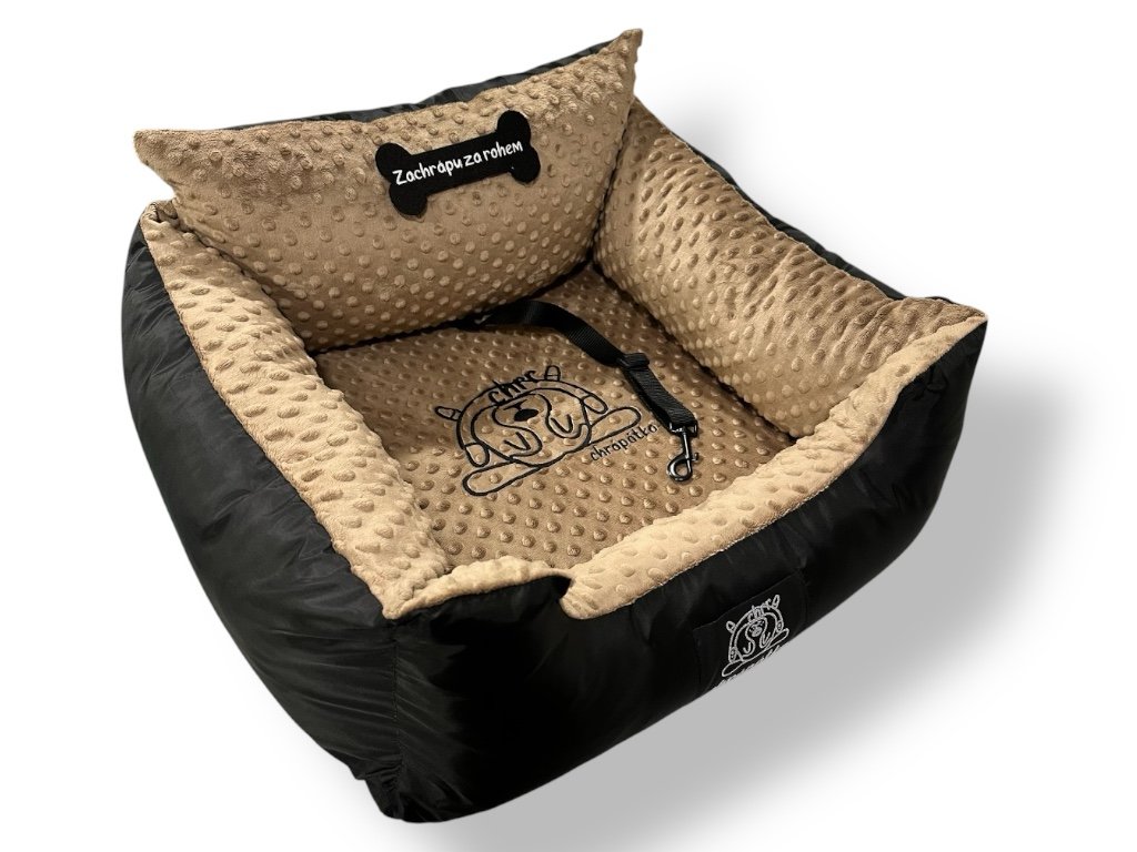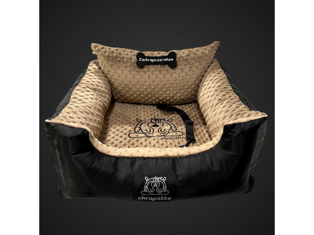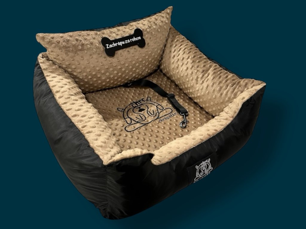 Autosedačka pro psy Chrápátko "Zachrápu za rohem" Latte