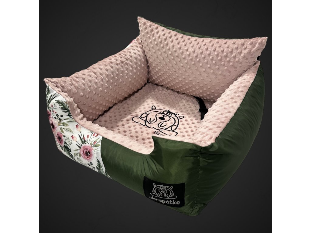 Luxusní materiály, prémiová výšivka na potahu matrace s logem Chrápátka a nášivka na předním mantinelu spolu s pořádnou vycpávkou donutí vašeho psa doslova zachrápat!