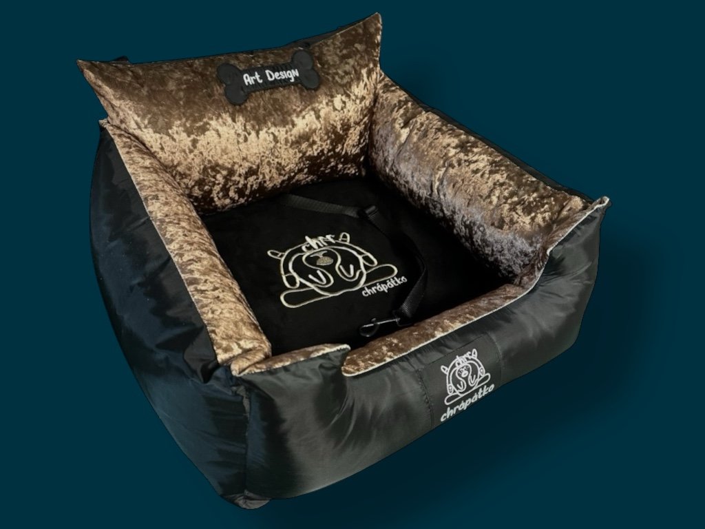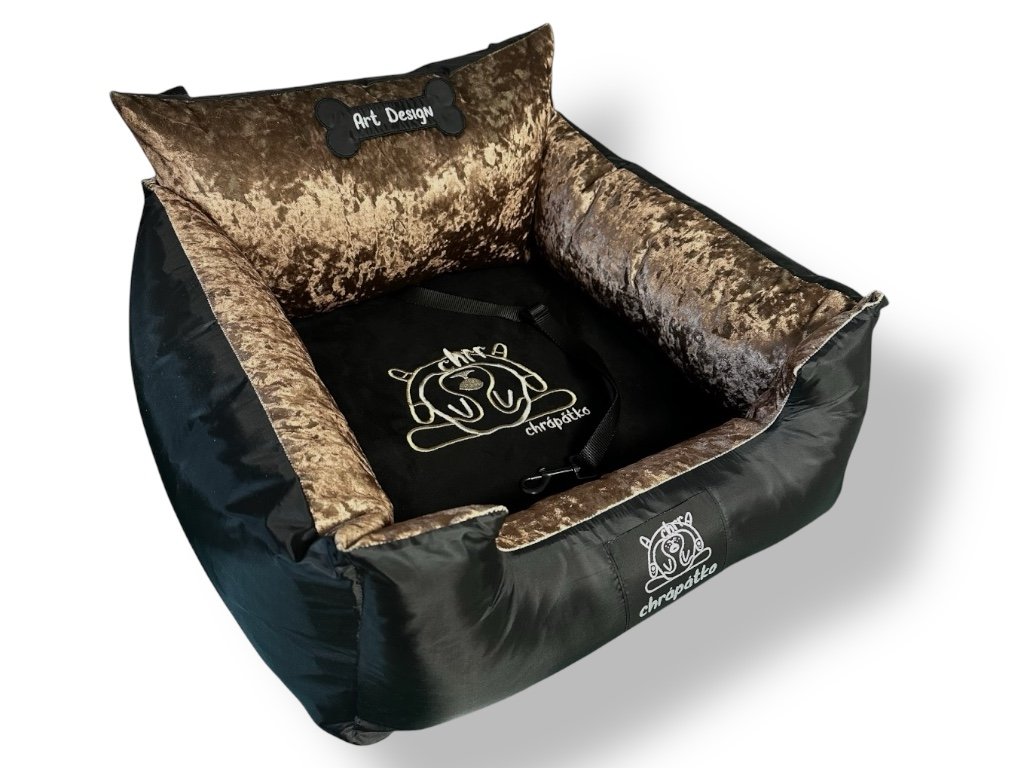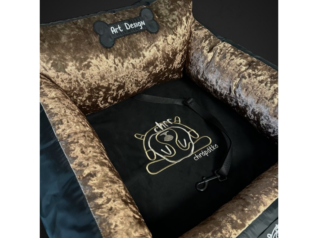 Luxusní materiály, prémiová výšivka na potahu matrace s logem Chrápátka a nášivka na předním mantinelu spolu s pořádnou vycpávkou donutí vašeho psa doslova zachrápat!
