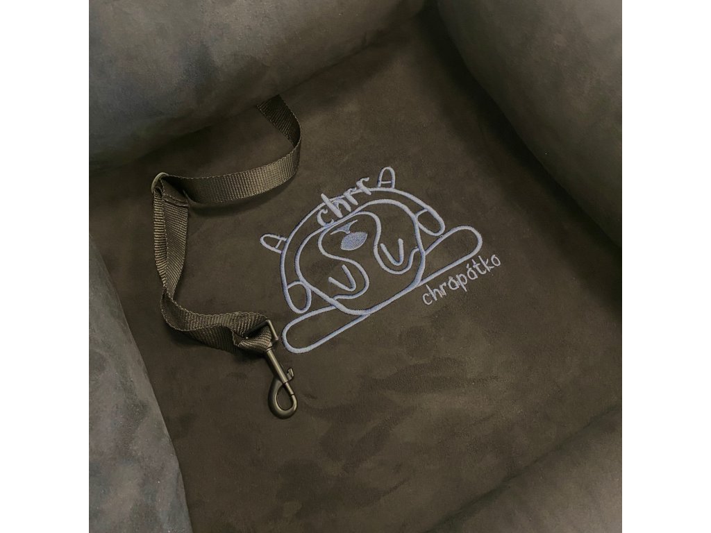 Luxusní materiály, prémiová výšivka na potahu matrace s logem Chrápátka a nášivka na předním mantinelu spolu s pořádnou vycpávkou donutí vašeho psa doslova zachrápat!