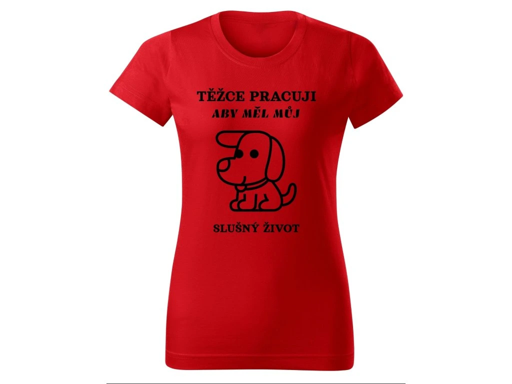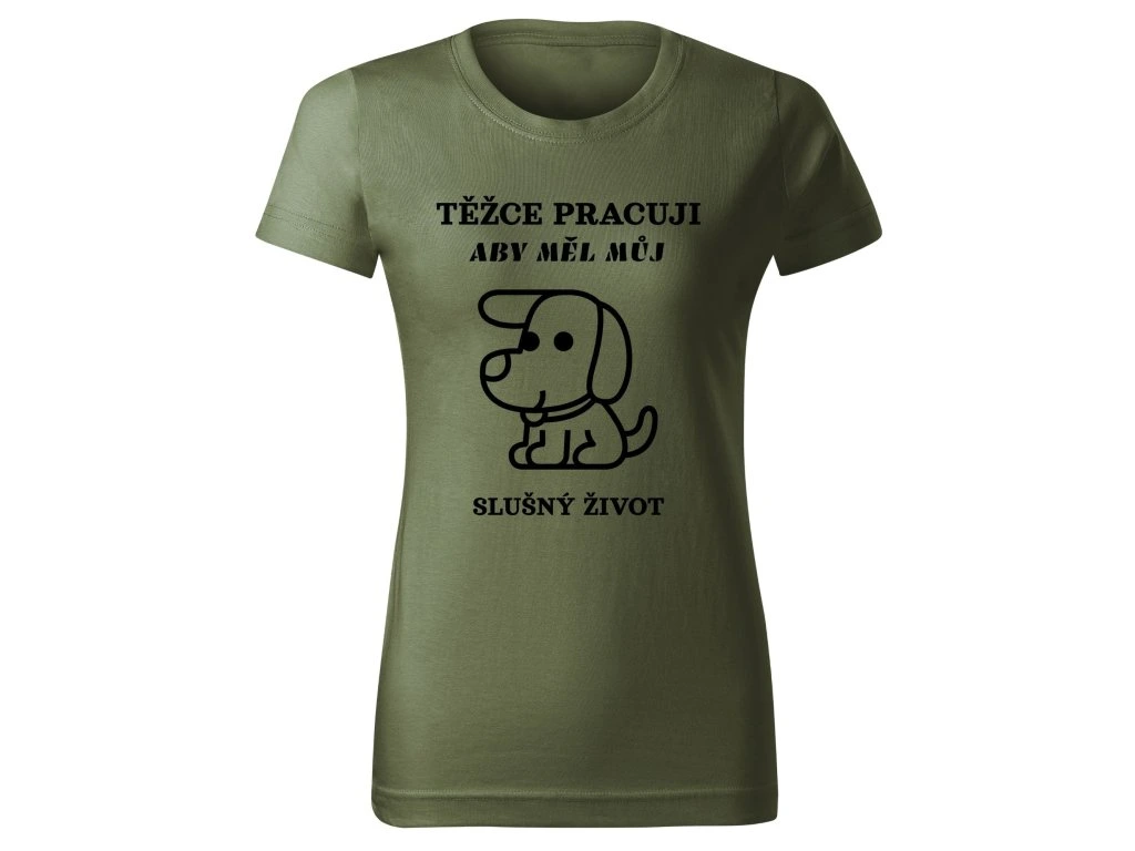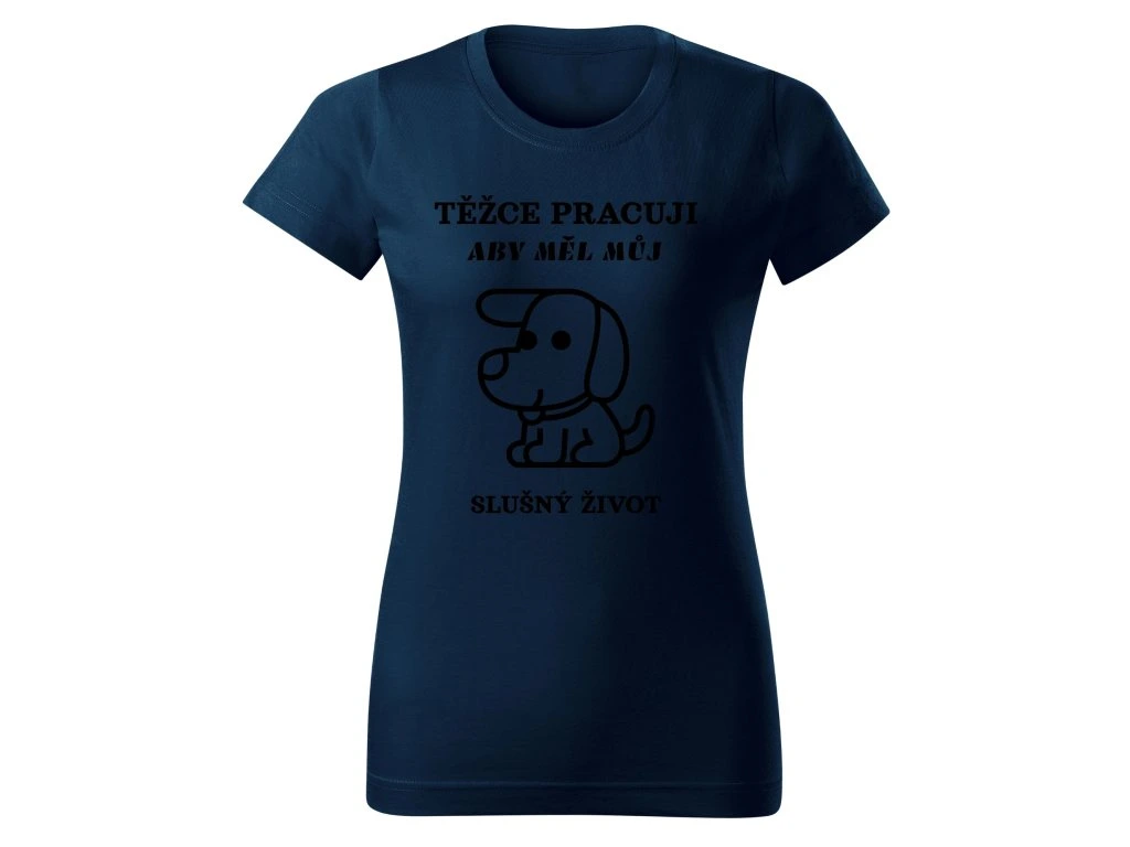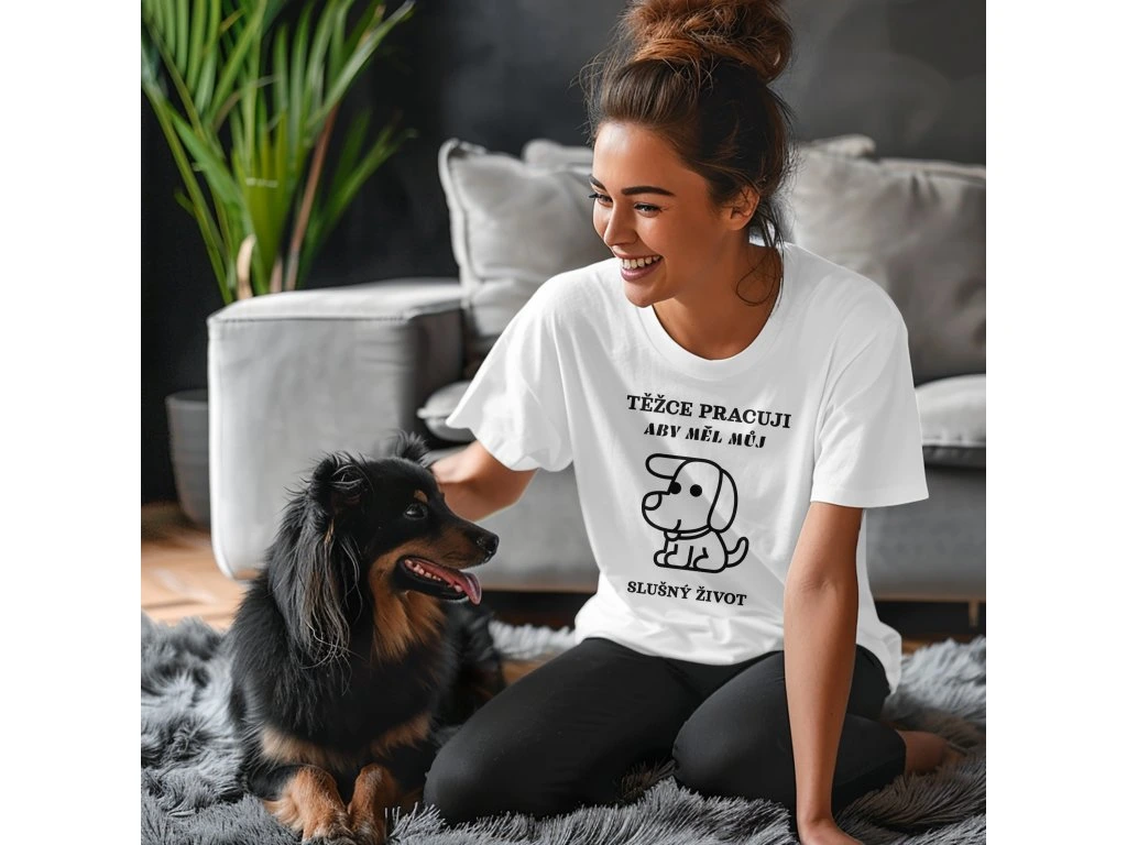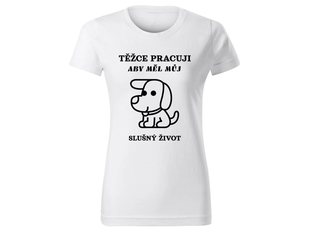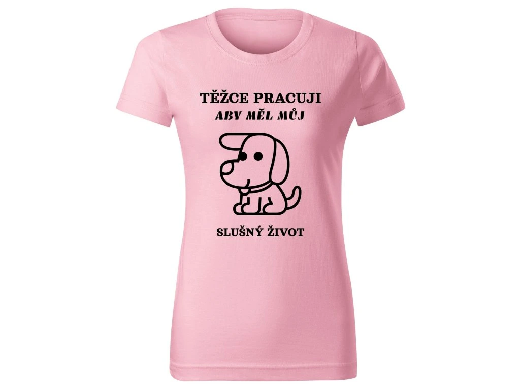 Dámské tričko TĚŽCE PRACUJI ABY MĚL SLUŠNÝ ŽIVOT – Pro páníčky s velkým srdcem