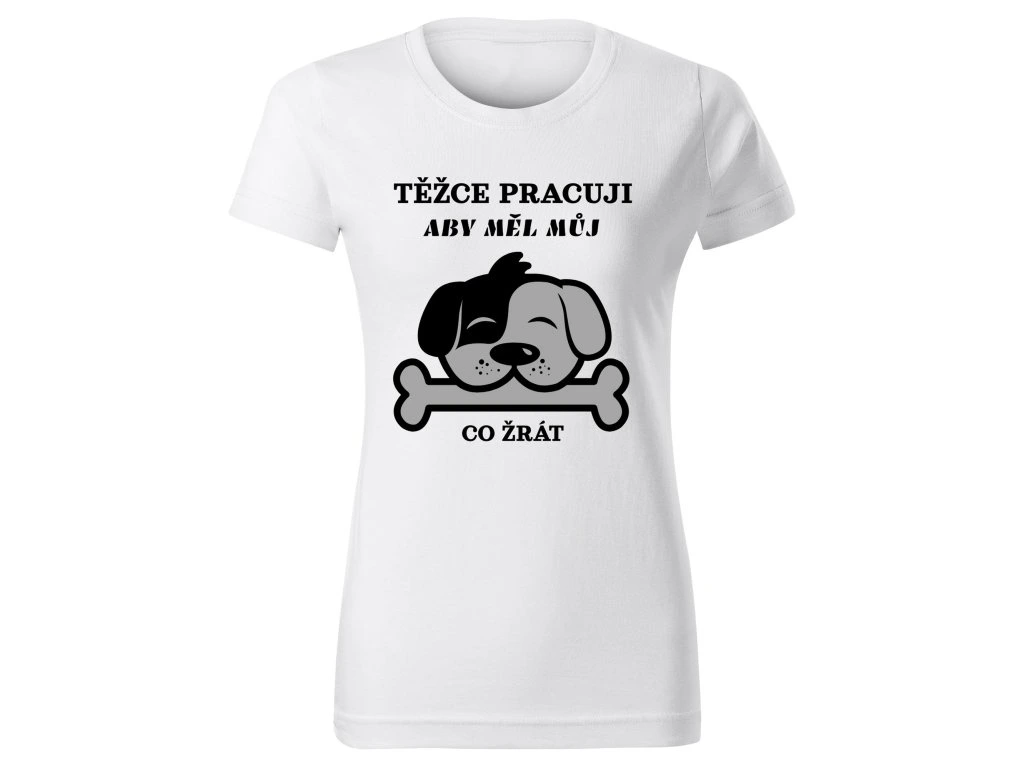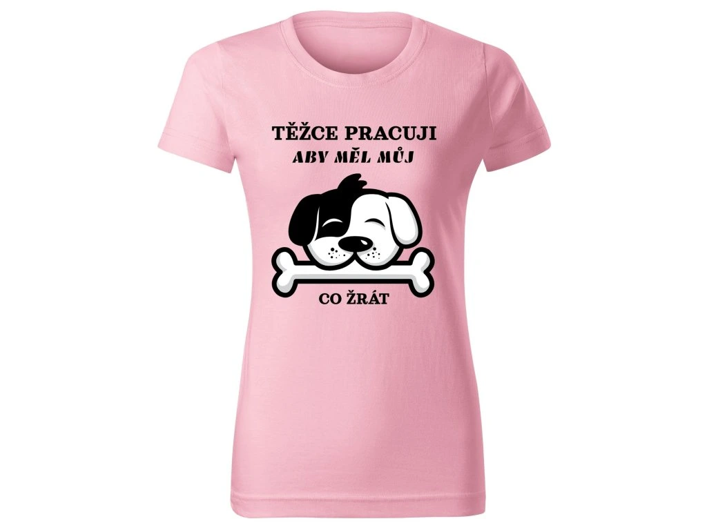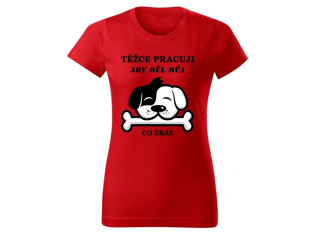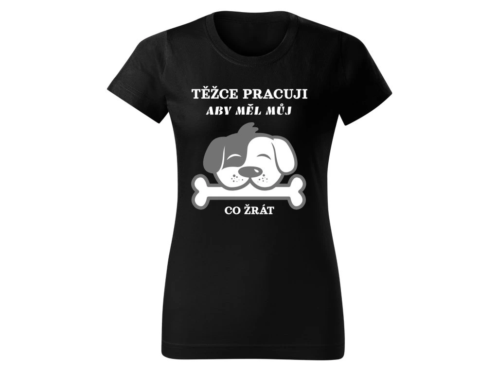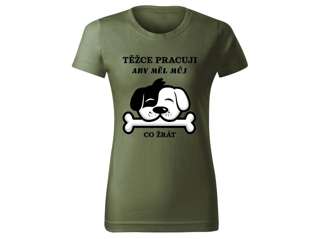 Dámské tričko "Těžce pracuji, aby měl co žrát" – Miska plná? Mise splněna!