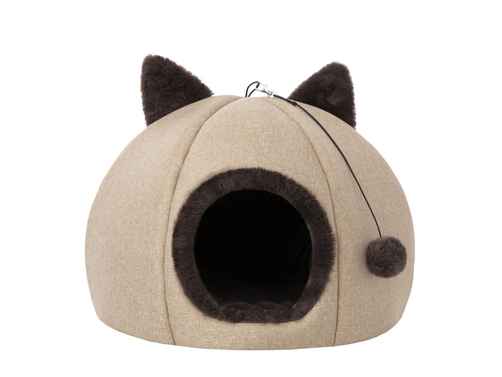 Součástí je i hravý měkký míček na gumičce. AURA je perfektní volba pro kočky, které milují soukromí a útulné skrýše.