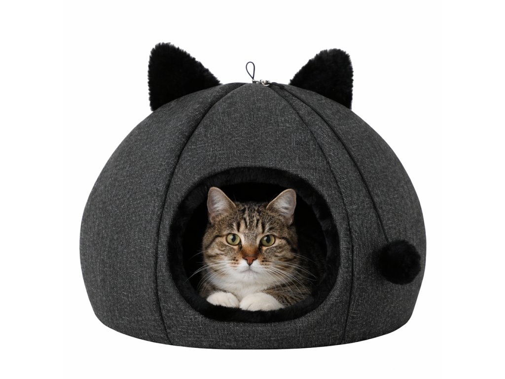 Domeček pro kočky AURA – útulný úkryt ve tvaru kočičí hlavy