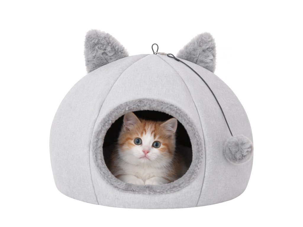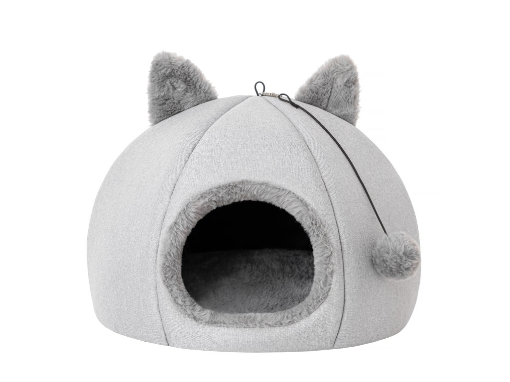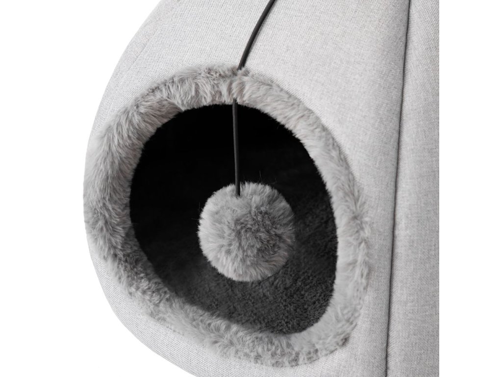 Součástí je i hravý měkký míček na gumičce. AURA je perfektní volba pro kočky, které milují soukromí a útulné skrýše.