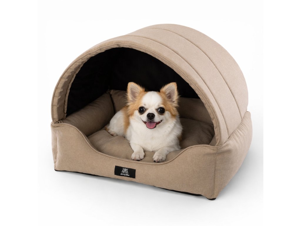 - 2v1 – domeček a pelíšek – útulný krytý prostor se stříškou a měkké ležení v jednom produktu.