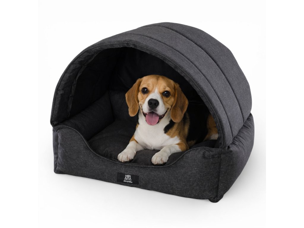 - 2v1 – domeček a pelíšek – útulný krytý prostor se stříškou a měkké ležení v jednom produktu.
