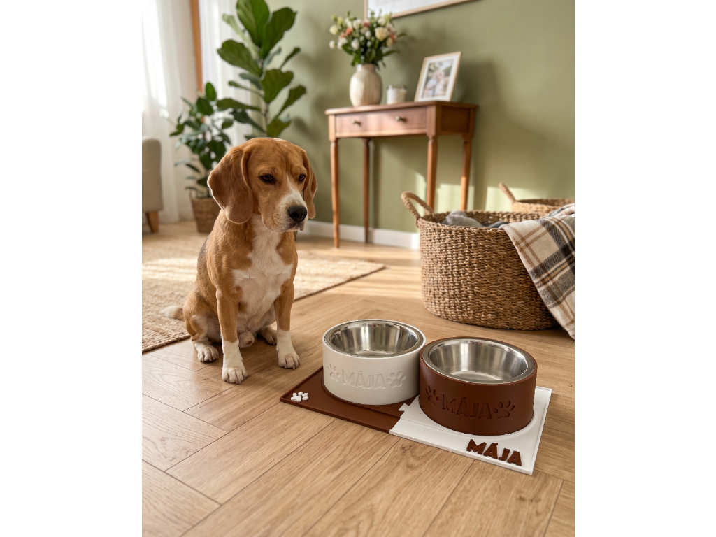 Hledáte originální a praktický dárek pro vašeho čtyřnohého miláčka? Objevte naši exkluzivní dvojmisku PUZZLE Chrápátko, kterou navrhneme přesně na míru pro vašeho psího kamaráda. Každá miska je unikátní, s možností přidání jména vašeho pejska přímo na misku i podložku což dodává osobitý charakter.