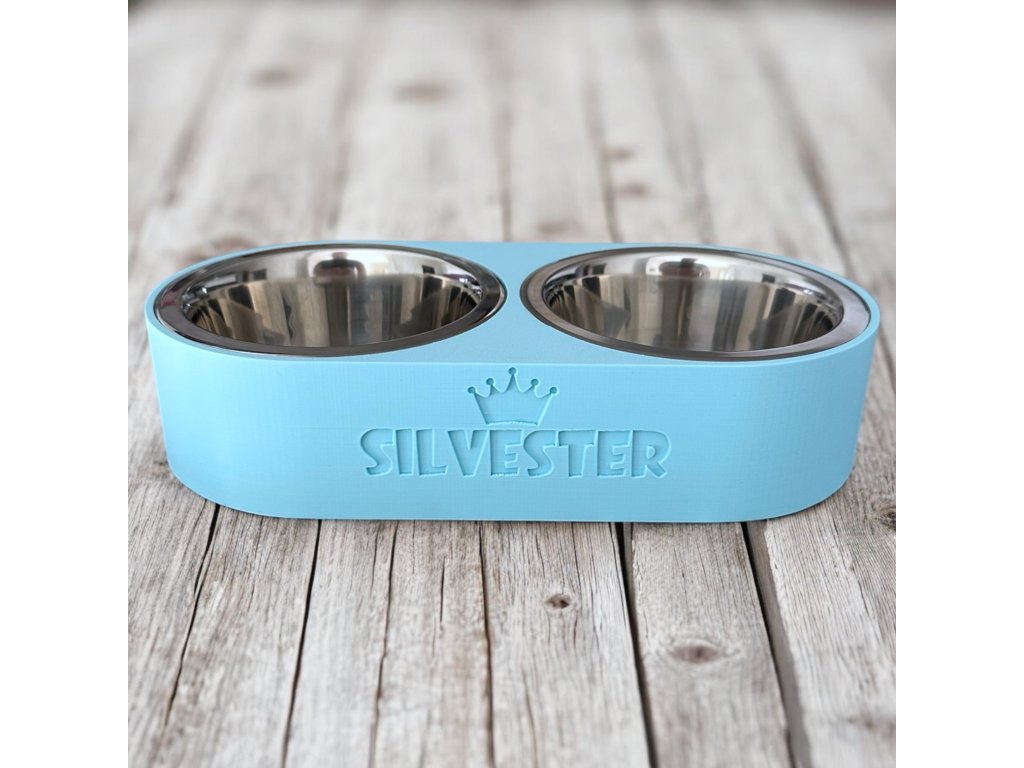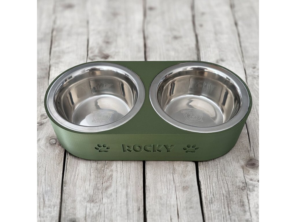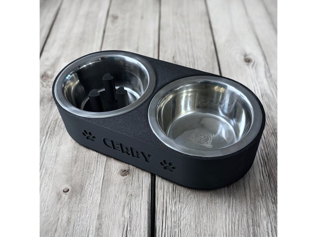 Krásná dvojmiska pro pejska nebo kočičku se jménem, kterou vám budou sousedovic chlupáči závidět.