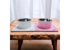 Dvojitá miska kombinuje dvě nerezové misky v jednom podstavci – jedna na krmivo, druhá na vodu. Obě nerezové misky lze vyjmout a vložit do myčky. Podstavec s podložkou se umývá ručně pod tekoucí vodou.