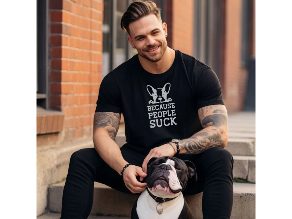 Pánské tričko „Because People Suck“ – Pro páníčky, kteří dávají přednost psí společnosti