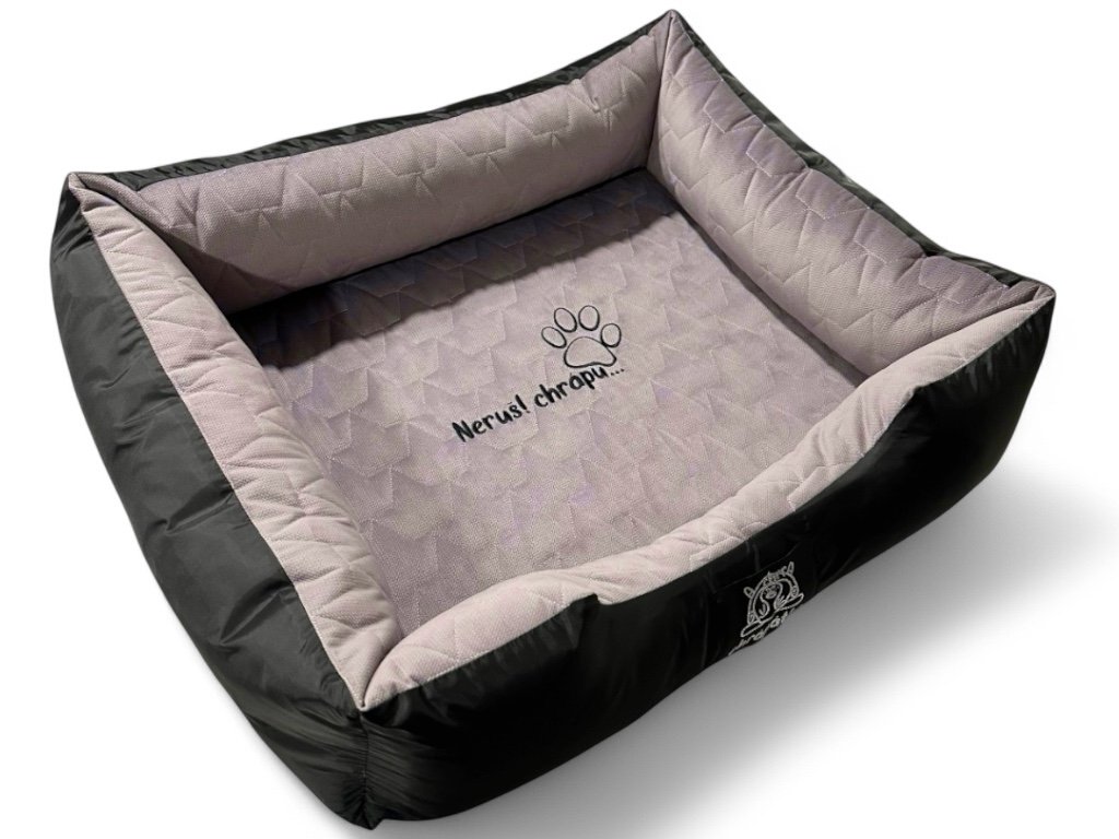 Luxusní materiály, prémiová výšivka na potahu matrace a nášivka na předním mantinelu spolu s pořádnou vycpávkou donutí vašeho psa doslova zachrápat!