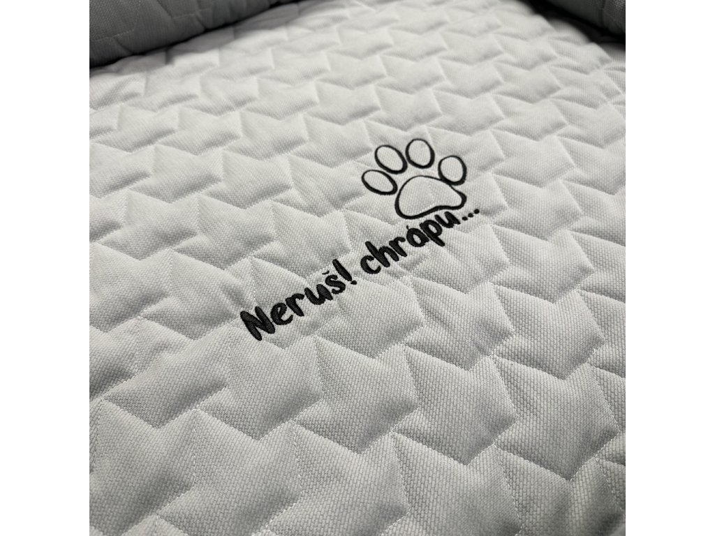 Luxusní materiály, prémiová výšivka na potahu matrace a nášivka na předním mantinelu spolu s pořádnou vycpávkou donutí vašeho psa doslova zachrápat!