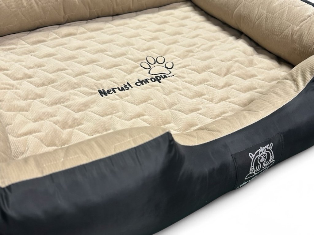 Luxusní materiály, prémiová výšivka na potahu matrace a nášivka na předním mantinelu spolu s pořádnou vycpávkou donutí vašeho psa doslova zachrápat!