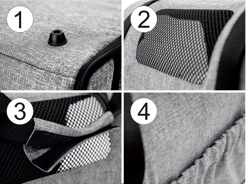 - Boční okénko – umožní zkontrolovat psa bez otevírání zipu.