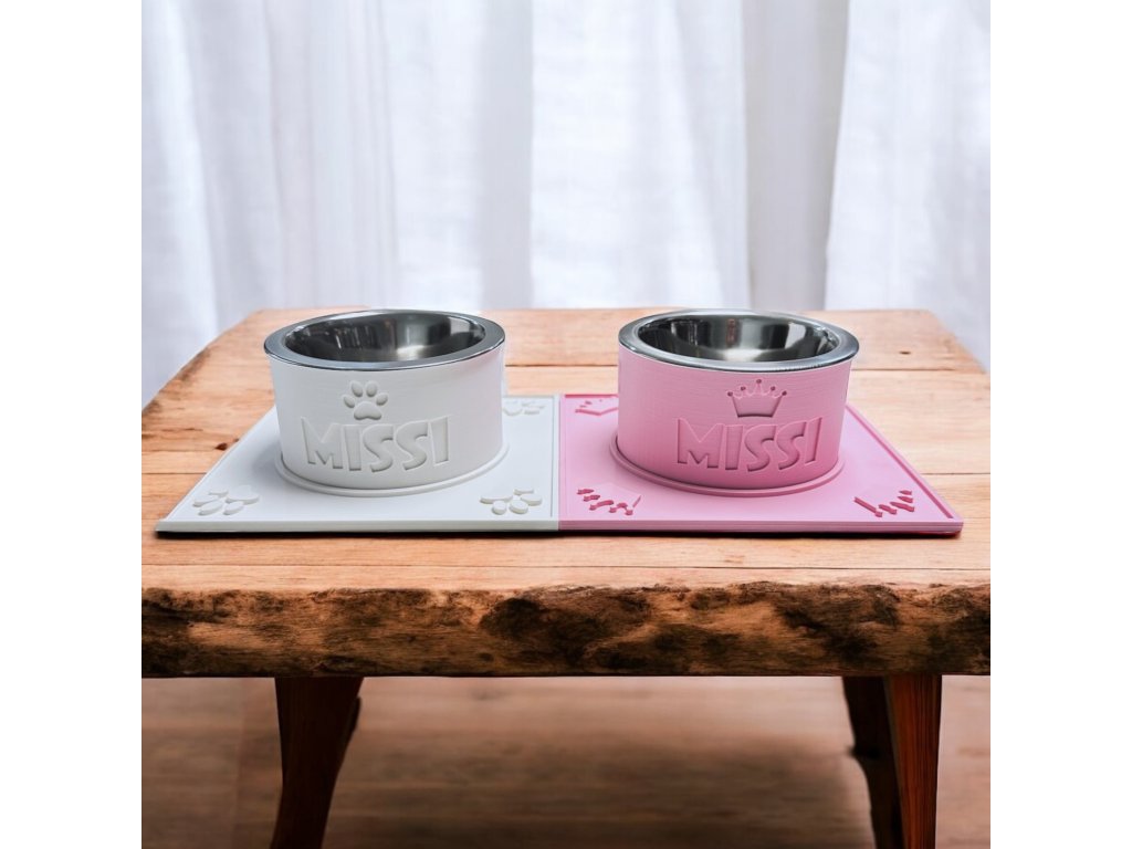 Chcete misku pro psa nebo kočku, kterou jen tak někdo nemá? Potřebujete originální dárek pro svého mazlíka? Vyrobíme vám misku na míru! Jméno, dekoraci a barvu si vybíráte sami. Dokážeme kombinovat jinou barvu dekorace na podložce i přidat jméno.