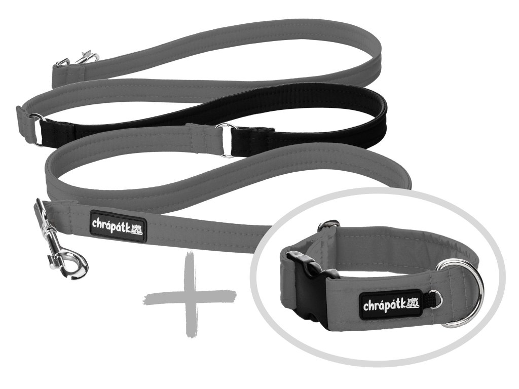Stylový set obojku a přepínacího vodítka ve světle šedém odstínu – odolný, pohodlný a bezpečný pro každou procházku.