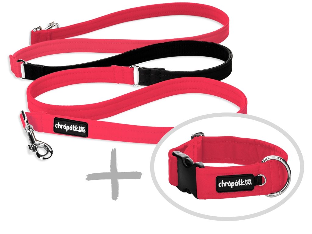 Stylový set obojku a přepínacího vodítka v neonově růžové barvě – odolný, pohodlný a bezpečný pro každou procházku.