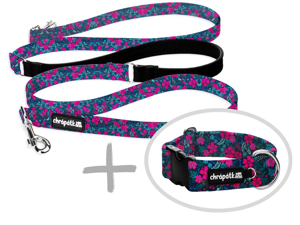 Stylový set obojku a přepínacího vodítka v designu Style Flowers – odolný, pohodlný a bezpečný pro každou procházku.